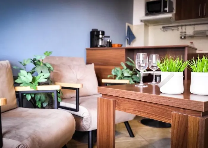 Studio Comfort Blue van 30 m^2 biedt gasten een balkon, evenals modern comfort zoals airconditioning. Dit appartement bestaat uit 1 slaapkamer. Het appartement heeft ook 1 badkamer. Verder zijn er een haardroger en handdoeken beschikbaar.